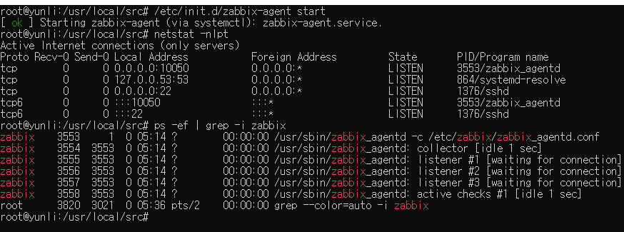 root@yunli:/usr/local/src# ps -ef | grep -i zabbix