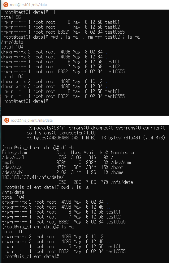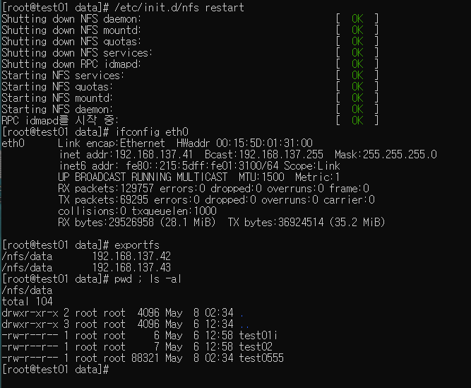 192.168.137.41 서버와 192.168.137.42 서버의 공유 디렉토리 설정 된 모습